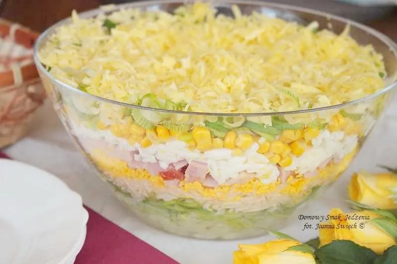 - Sałatka warstwowa z wędzonym kurczakiem